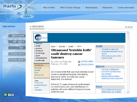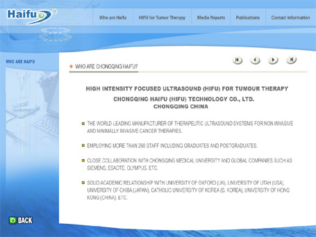 重慶海扶醫(yī)療科技股份有限公司(以下簡稱:海扶醫(yī)療)成立于1999年,是致力于聚焦超聲外科領(lǐng)域的基礎(chǔ)研究、設(shè)備開發(fā)、生產(chǎn)制造、臨床方案、培訓(xùn)支持、市場營銷、售后服務(wù)于一體的醫(yī)療設(shè)備和綜合解決方案的提供商,是國家級高新技術(shù)企業(yè)。海扶醫(yī)療堅持以企業(yè)為技術(shù)創(chuàng)新主體,堅持走中國特色大型治療設(shè)備的原創(chuàng)之路,自主開發(fā)重慶多媒體的出聚焦超聲外科治療良、惡性腫瘤、婦科常見病、康復(fù)保健三大系列、十多種型號高端醫(yī)療設(shè)備,技術(shù)成果居世界領(lǐng)先水平。海扶醫(yī)療的超聲治療設(shè)備已取得了中國CFDA注冊認(rèn)證、歐盟CE注冊認(rèn)證等33個國家和地區(qū)的市場準(zhǔn)入證,已出口英國、意大利、西班牙、俄羅斯、沙特阿拉伯、德國、古巴、南非等國,在“一帶一路”北中南三條主線的20多個國家的醫(yī)療機(jī)構(gòu),建立了50余家聚焦超聲外科治療中心。目前,國內(nèi)外已有2300多家醫(yī)療機(jī)構(gòu)在臨床廣泛應(yīng)用海扶?聚焦超聲外科系列設(shè)備,累計在全球治療各種良、惡性腫瘤患者8萬余例(其中惡性腫瘤病人存活期最長時間已達(dá)20年),小型化婦科設(shè)備已經(jīng)治療婦科患者超過200余萬例,其臨床安全性和有效性通過了十多個國家臨床驗證,相關(guān)臨床成果在Nature系列雜志上公開評述,重慶動畫公司BBC亦多次做出專題報道。海扶醫(yī)療在聚焦超聲外科技術(shù)原創(chuàng)領(lǐng)域具備完全自主知識產(chǎn)權(quán)和國際競爭的優(yōu)勢。